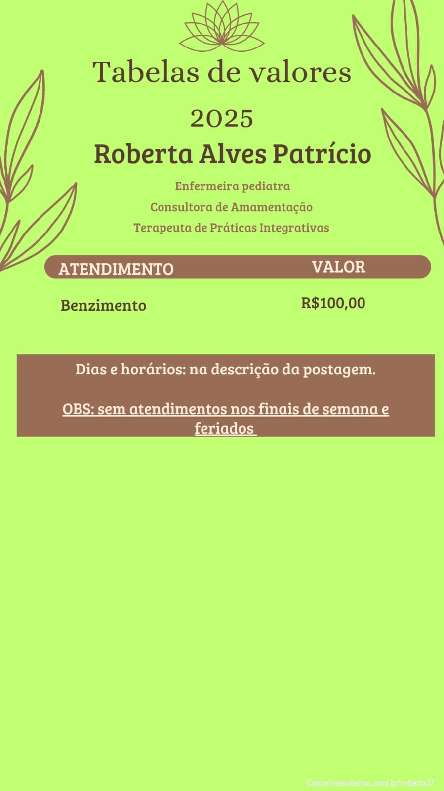 OBS: sem atendimentos nos finais de semana e feriados.